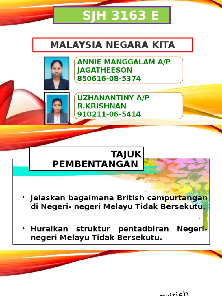 Negeri-negeri tersebut terdiri daripada negeri. This quiz is incomplete. PENTADBIRAN NEGERI-NEGERI MELAYU TIDAK BERSEKUTU.